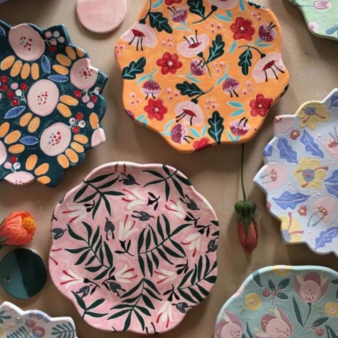 This 4 inch Clay Dish will be in laid with designer floral paper and sealed with a topcoat. This class is for all ages six and older. It will be sent home in the same day however it will need a five day cure time at home.